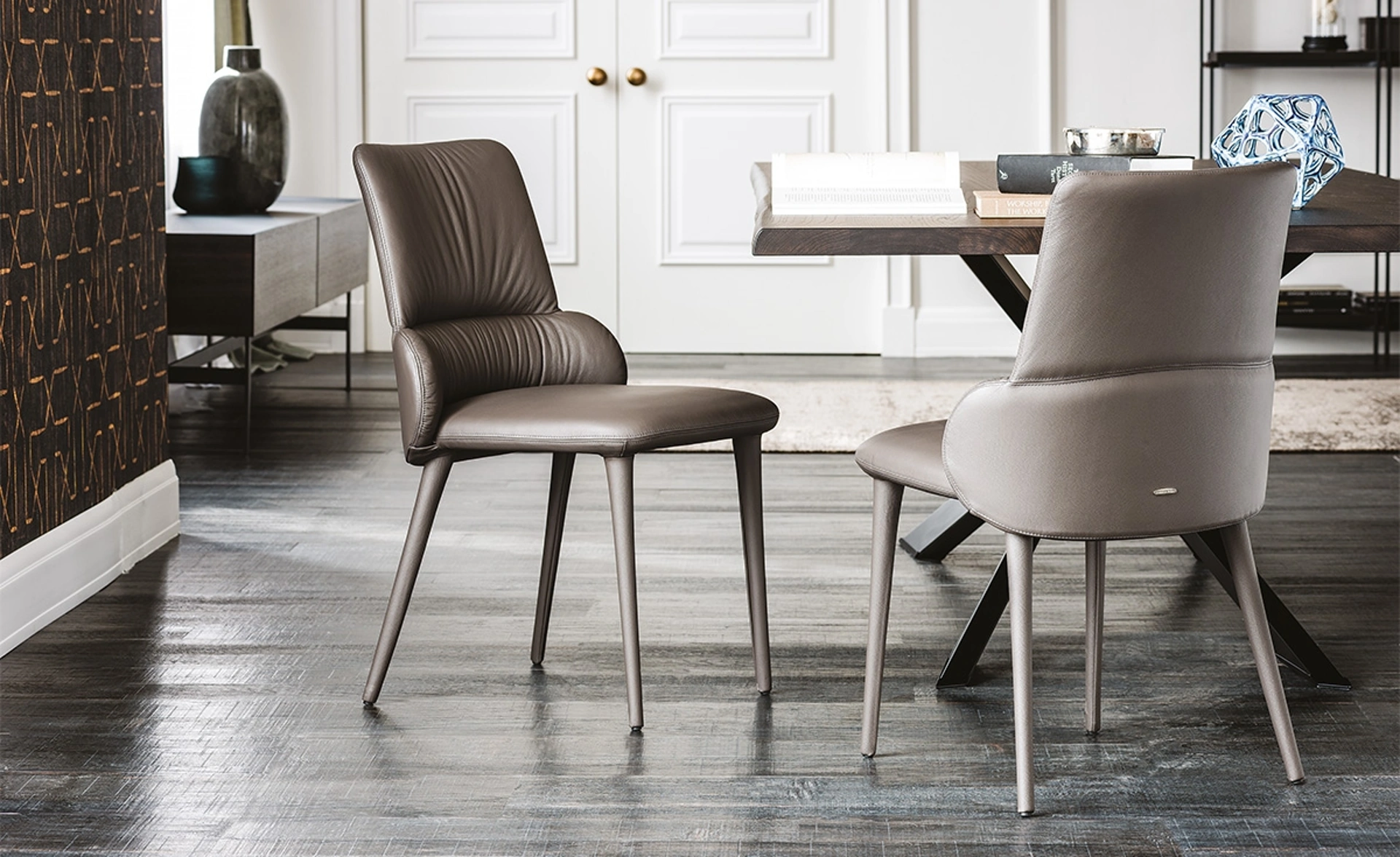 La sedia Ginger, firmata Cattelan Italia, incarna un design contemporaneo che offre un comfort avvolgente e una presenza estetica notevole. Distingue la sua silhouette con morbide pieghe sullo schienale e una scocca dalla forma arrotondata, impreziosita da due fasce orizzontali sovrapposte. È la scelta ideale per completare con stile tavoli da pranzo raffinati. La sua solida struttura in acciaio può essere personalizzata con rivestimenti in tessuto, micro nubuck, ecopelle o pelle, disponibili nel campionario. Il rivestimento, non sfoderabile, assicura una linea pulita e una manutenzione semplificata. La durabilità è assicurata da standard costruttivi elevati e dalla selezione di materie prime di eccellenza, per un prodotto che mantiene il suo valore nel tempo.