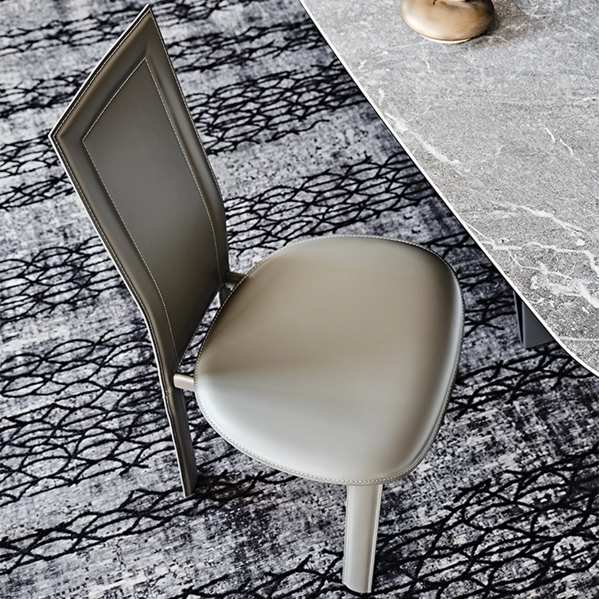 La sedia Lara, un'icona del design di Cattelan Italia creata da Giorgio Cattelan nel 1984, si distingue per la sua ingegneria robusta e raffinata. La struttura interna, realizzata in acciaio, è integralmente rivestita in cuoio di alta qualità, impreziosita da cuciture a vista che ne sottolineano l'artigianalità. Questa combinazione di materiali non solo garantisce una notevole durabilità ma offre anche un comfort ergonomico superiore, rendendola un elemento d'arredo versatile e sofisticato per qualsiasi ambiente.