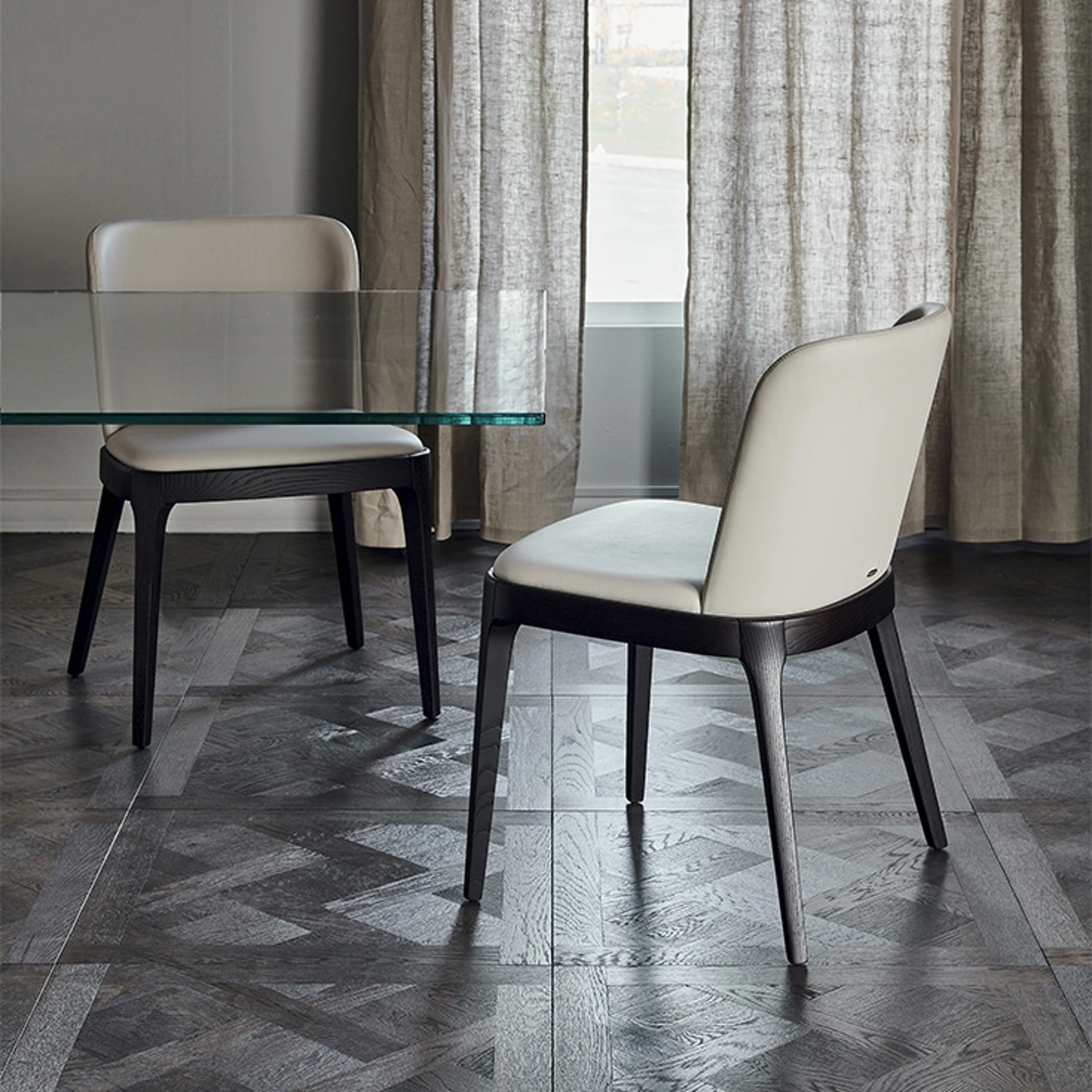 | Materiale: | Frassino naturale, Frassino tinto noce Canaletto, Frassino tinto rovere bruciato, Frassino laccato poro aperto nero opaco, Tessuto, Micro nubuck, Ecopelle, Pelle |
