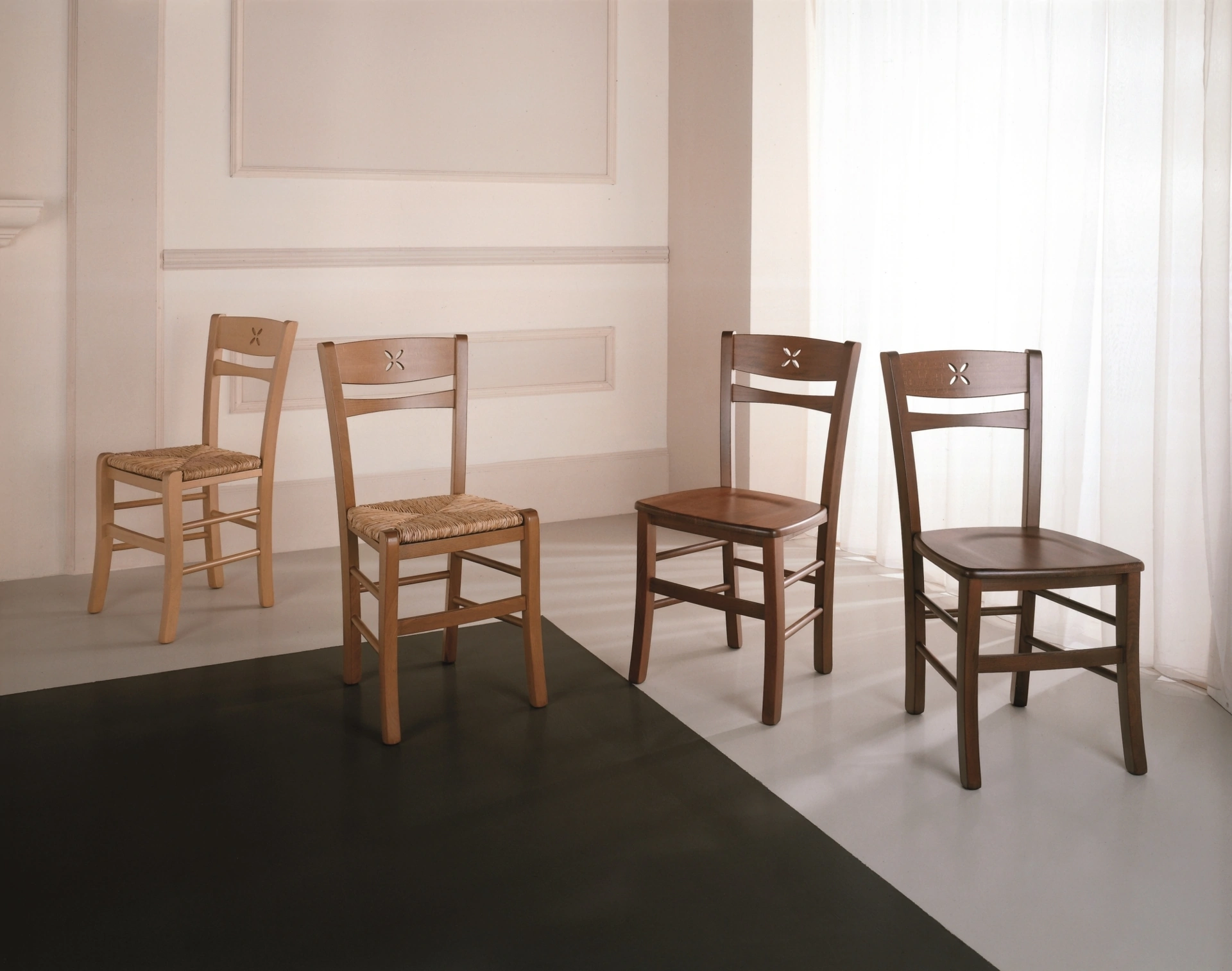 Quali opzioni di personalizzazione sono disponibili per la sedia Fiore?Presso Visone Casa S.r.l. puoi visionare i campioni di materiali come tessuti, legni e laccati per personalizzare la tua sedia Fiore. Il nostro team ti guiderà nella scelta migliore per il tuo ambiente.