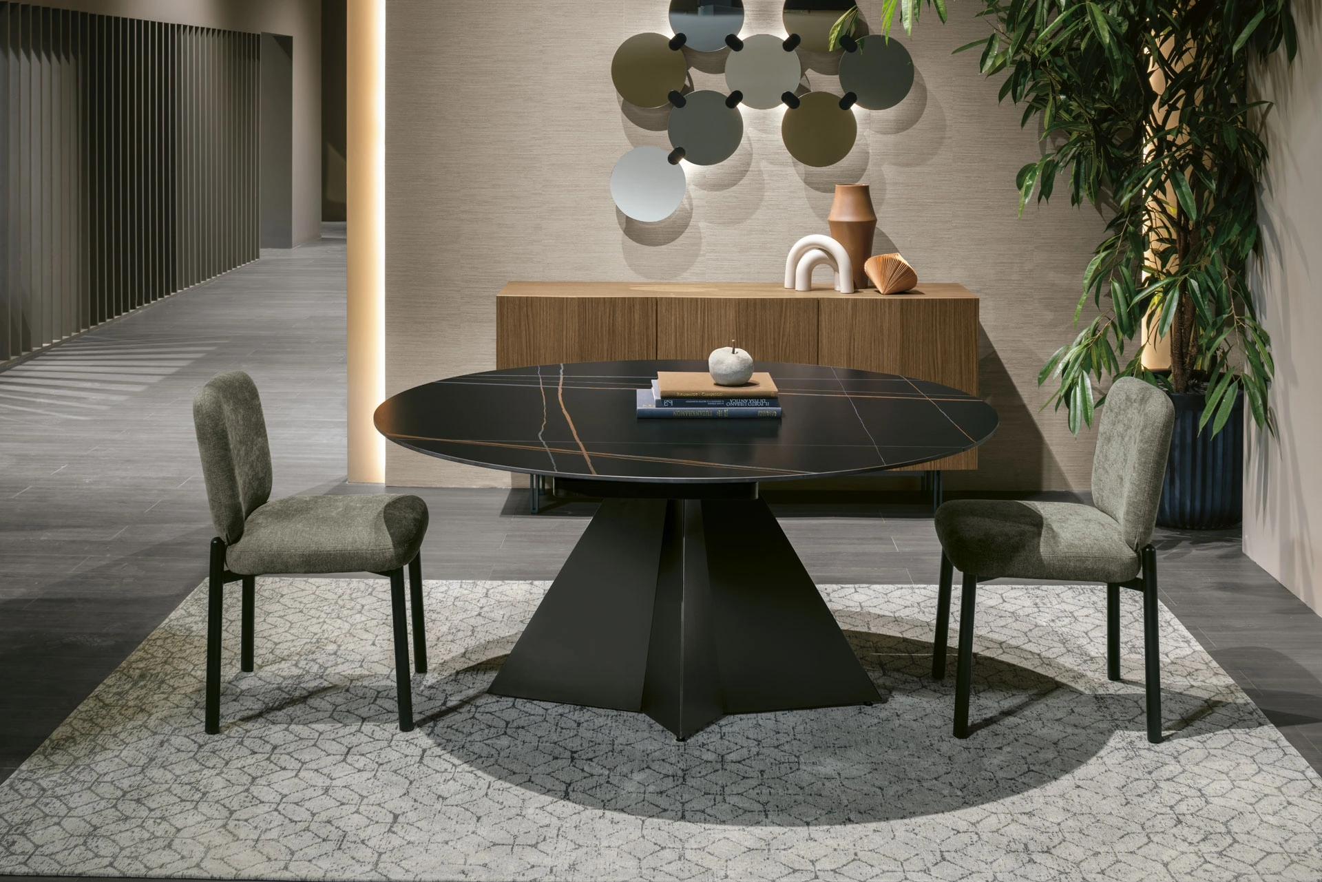 Quali materiali e finiture sono disponibili per la sedia Kanto?Le sedie Kanto di Target Point possono presentare diverse opzioni per struttura, seduta e rivestimento. Presso Visone Casa S.r.l. potrai esplorare la materioteca per scegliere tra vari tessuti, legni e laccati.
