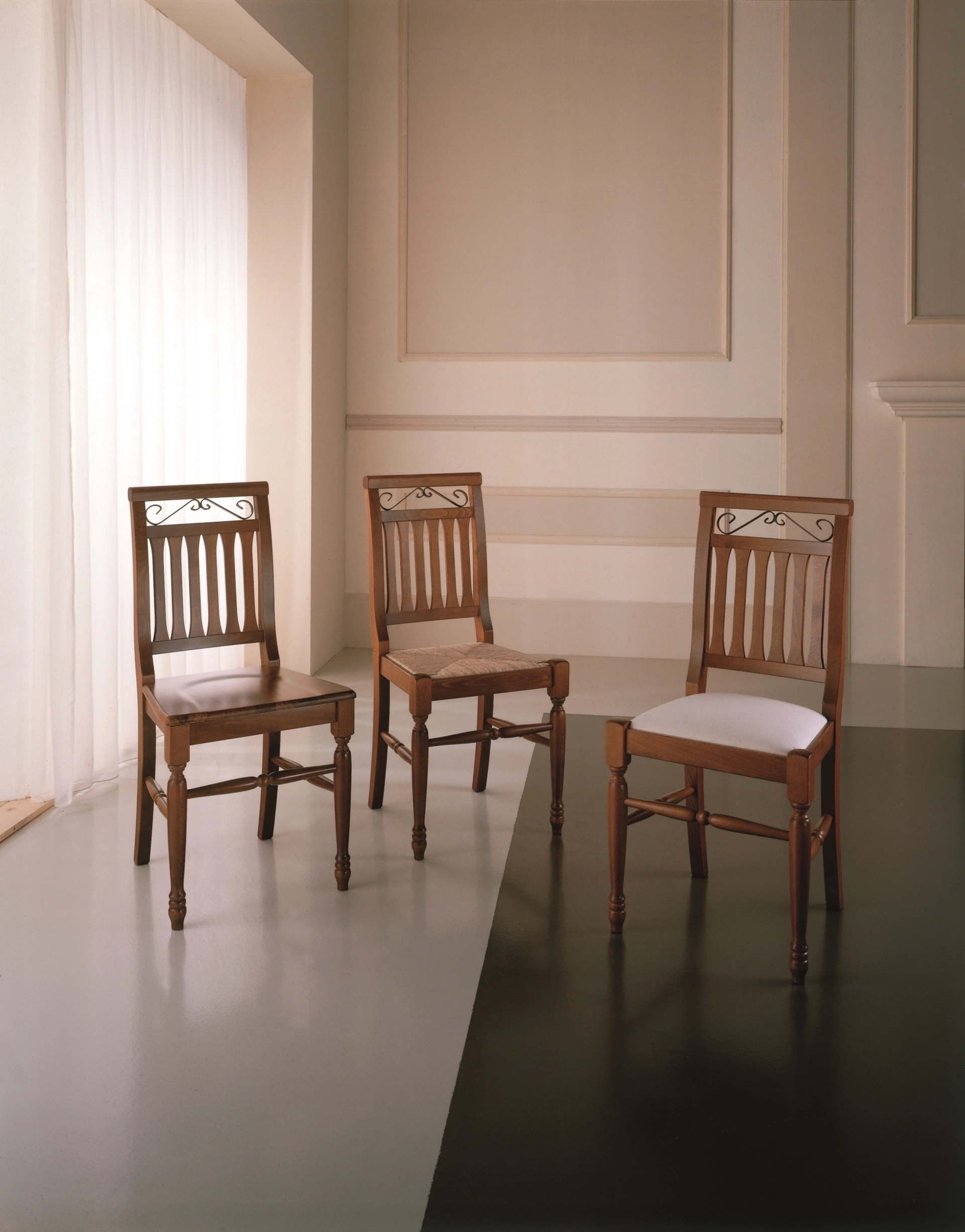 Le sedie M65T e M65TF di Gipi Le Sedie sono un esempio di artigianalità raffinata. Realizzate con faggio sapientemente sagomato, curvato e tornito, offrono una robustezza strutturale e un'estetica impeccabile. Il modello M65TF si distingue per un fregio in metallo curvato, trattato con vernici epossidiche a polvere, che aggiunge un tocco distintivo e valorizza il design complessivo. Questa attenzione ai dettagli sottolinea la qualità superiore e la durabilità del prodotto. La progettazione di questi arredi è orientata alla massima durata e all'eleganza funzionale, garantendo un valore intrinseco che perdura nel tempo.