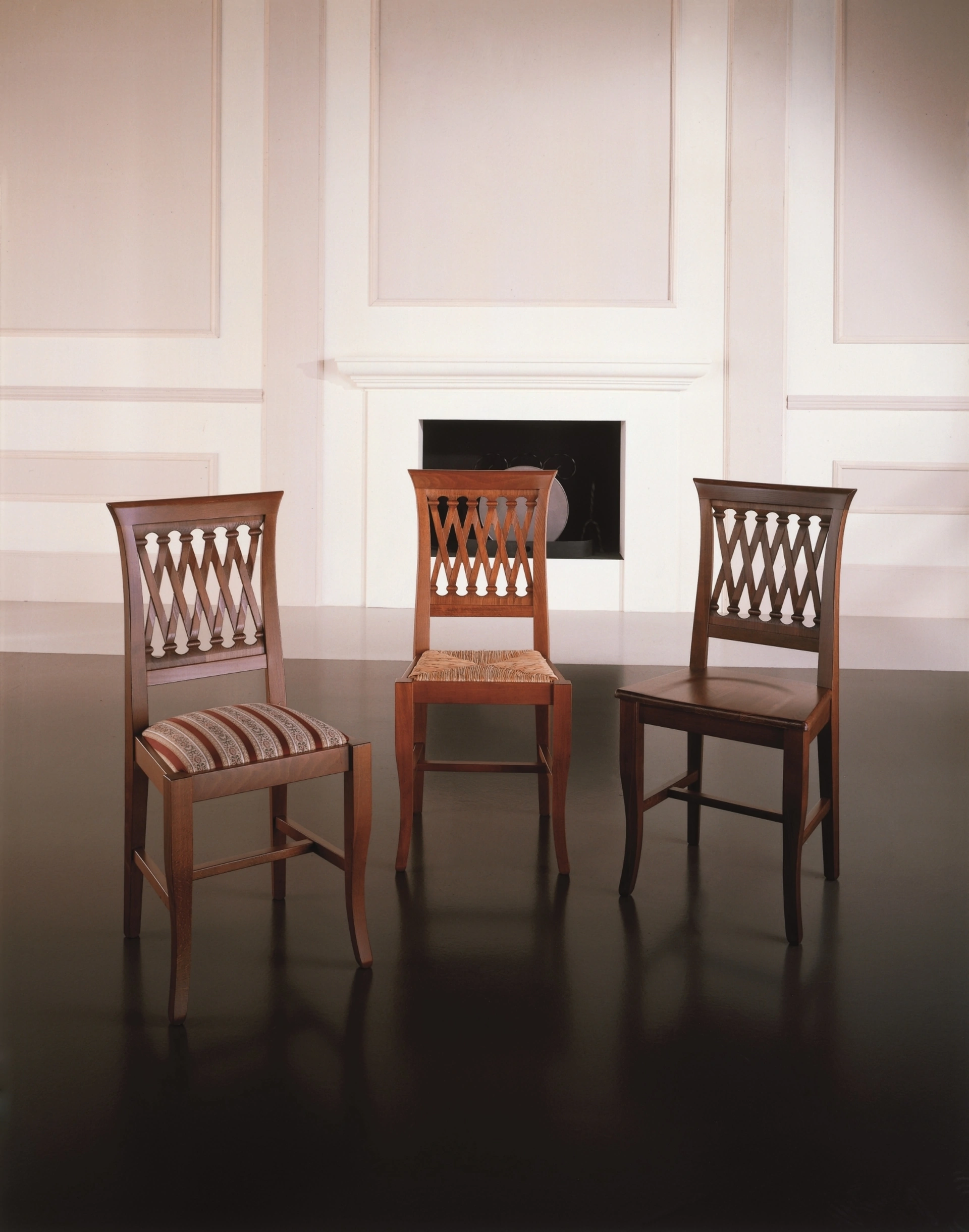 | Materiale: | Struttura in faggio sagomato e curvato; seduta in paglia, massello di faggio o imbottita (Cat. A / B). |