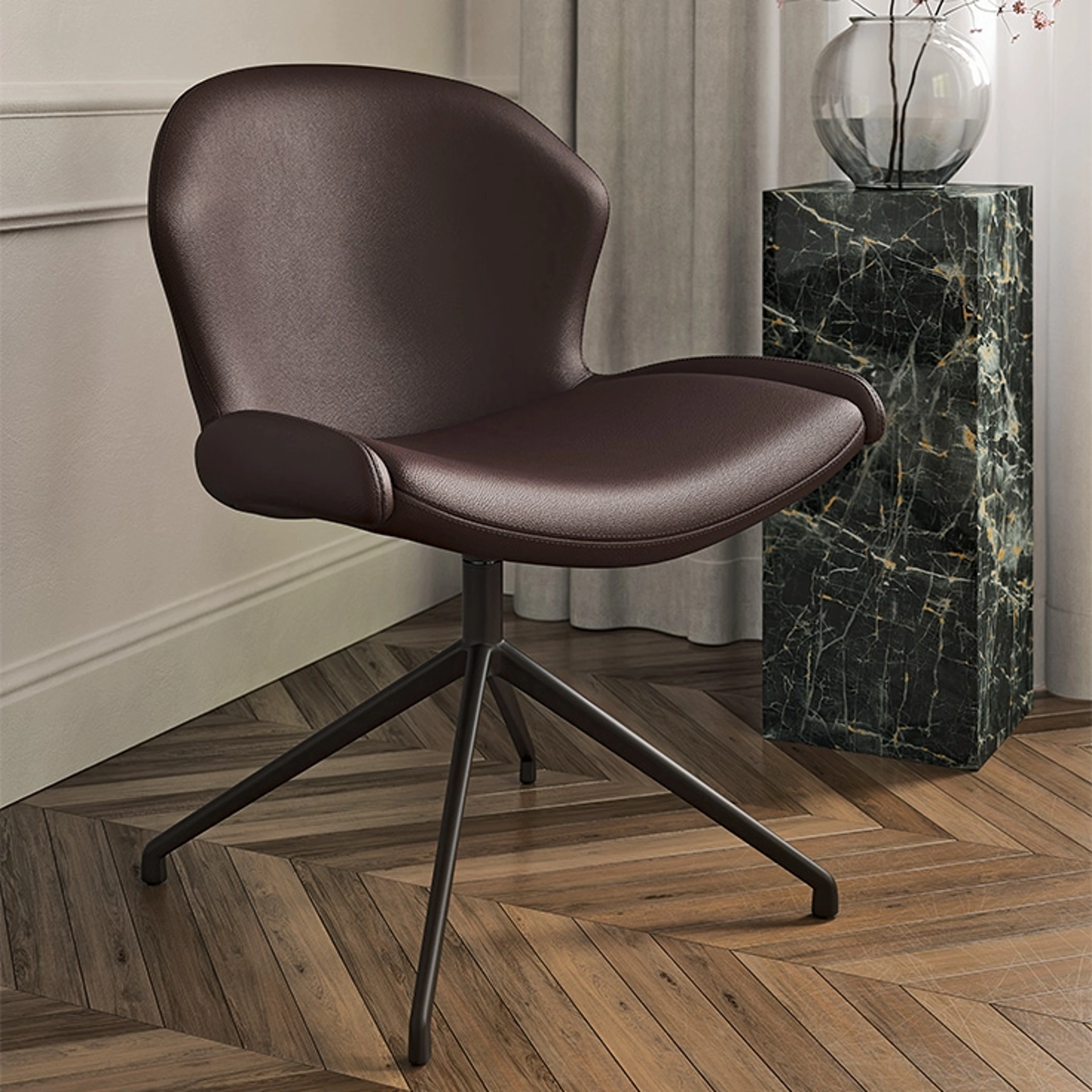 Scopri la sedia girevole Rachel Turn di Cattelan Italia, ora disponibile per essere ammirata e provata presso il nostro showroom Visone Casa S.r.l. ad Alife. Progettata da Luca Signoretti, questa sedia unisce un design raffinato a un comfort eccezionale, rendendola perfetta per ambienti domestici e professionali. La sua base a 4 razze in alluminio verniciato goffrato è offerta in finiture esclusive come titanio, bronzo, graphite, pearl o nero, permettendo un'integrazione armoniosa in ogni stile. Il rivestimento, disponibile in tessuto, micro nubuck, ecopelle o pelle, è impreziosito da dettagli sartoriali che esaltano la forma poligonale dello schienale. I bordi arrotondati si fondono con la seduta arcuata, studiata per avvolgere il corpo e garantire il massimo benessere. I profili imbottiti laterali ne accentuano l'aspetto invitante, rendendo la Rachel Turn un elemento d'arredo distintivo e funzionale. Visone Casa S.r.l. è il vostro partner d'arredo di fiducia, pronto a offrirvi consulenza esperta e soluzioni complete per case e uffici in tutta l'area di Alife e i comuni limitrofi.