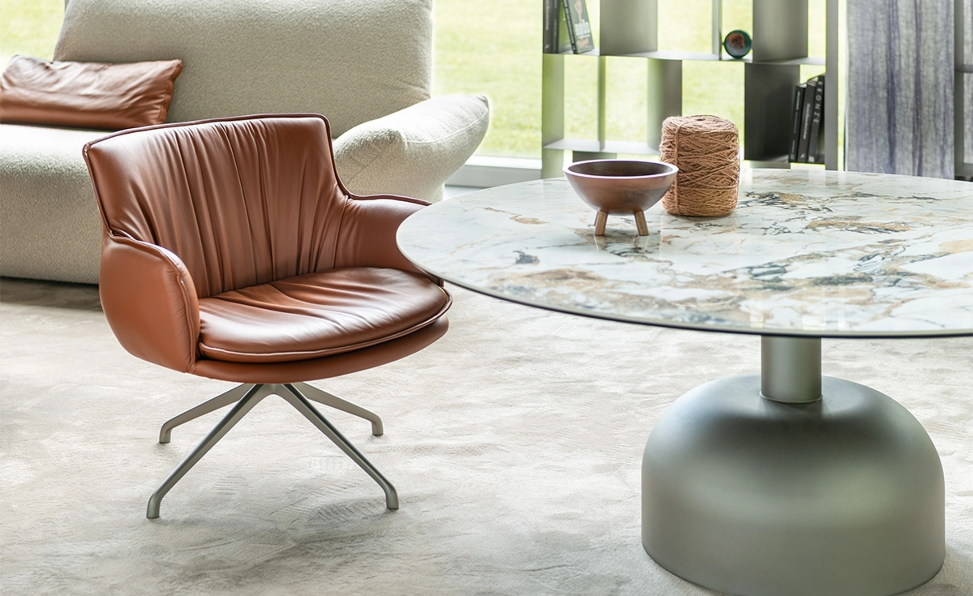 Scopri la raffinata Rhonda Lounge, la poltrona girevole di design che arricchisce la collezione Cattelan Italia, ora disponibile per essere ammirata e provata nel nostro showroom Visone Casa S.r.l. ad Alife. Caratterizzata da una seduta ampia e un design avvolgente, questa poltrona moderna si distingue per la sua base girevole che ne esalta la silhouette elegante. La struttura profonda e i dettagli curati dello schienale sottolineano le linee delicate, rendendola un elemento d'arredo di grande impatto. La Rhonda Lounge incarna l'equilibrio ideale tra stile, funzionalità e comfort. La sua struttura metallica offre versatilità in diverse altezze e configurazioni, con possibilità di personalizzazione tramite un'ampia selezione di pelli e tessuti pregiati.