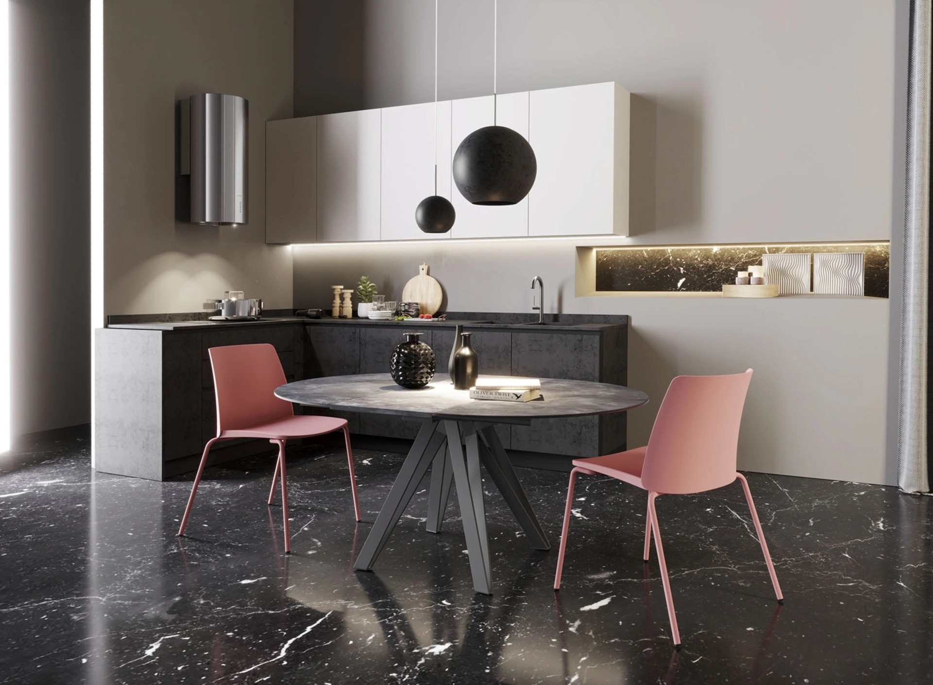 Se vuoi cambiare i mobili moderni che hai in casa o comprarli per la prima volta, da noi potrai vedere dal vivo le soluzioni più originali sul mercato. In showroom ti aspetta una ricca gamma di Tavoli allungabili dei migliori produttori, tra cui anche il modello da cucina visibile in foto. Durante la scelta del tavolo giusto per te è necessario valutare dimensioni, forme, materiali e stile, per ottimizzare lo spazio con grande valore estetico. Prediligi i mobili e complementi in ceramica dei migliori produttori per completare con funzionalità i tuoi locali senza mai trascurare l'estetica.