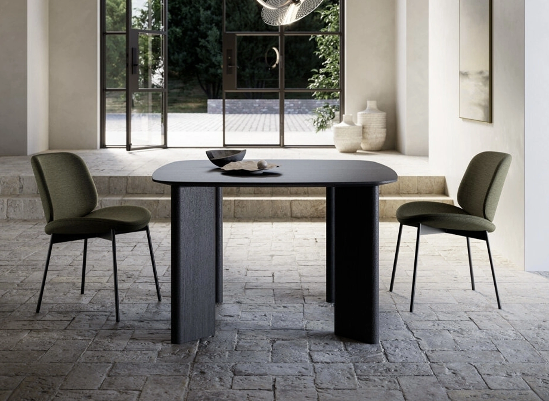 Quali caratteristiche distintive ha il tavolo "Arco quadrato" di Arredo3?Il tavolo "Arco quadrato" di Arredo3 si distingue per la sua forma elegante e funzionale, ideale per ottimizzare gli spazi. È progettato per integrarsi armoniosamente in diversi contesti d'arredo, offrendo versatilità e stile.