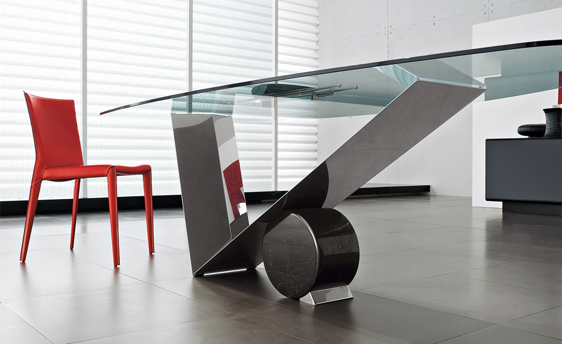 | Materiale: | Base: Legno pregiato o Acciaio inox lucido; Cilindro: Marmo (Travertino, Marmo Nero Marquina, Marmo Bianco Carrara); Piano: Vetro (trasparente o fumé), spessore 12 mm |