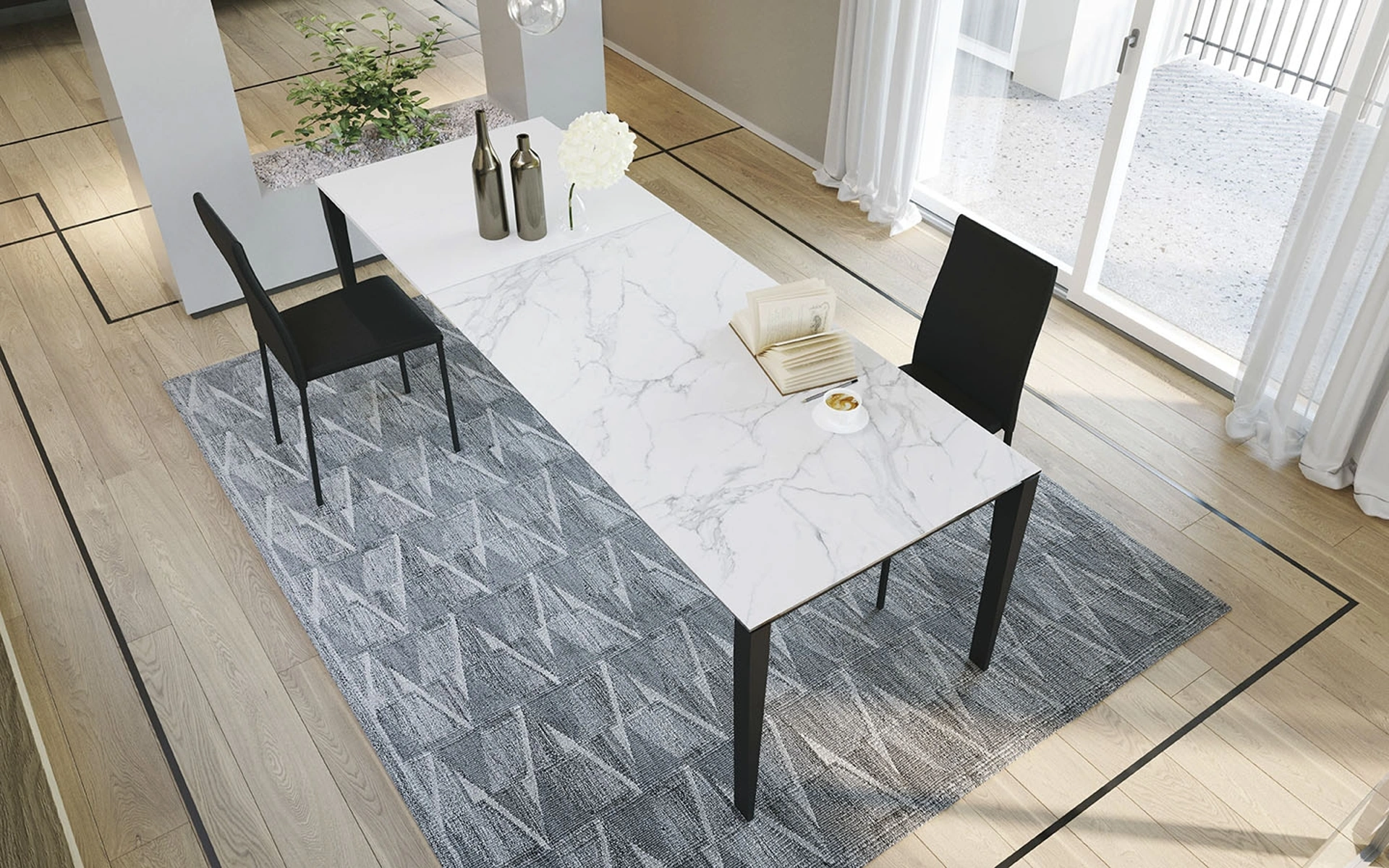 Tavolo allungabile Diapason in vetroceramica bianco Calacatta di Zamagna