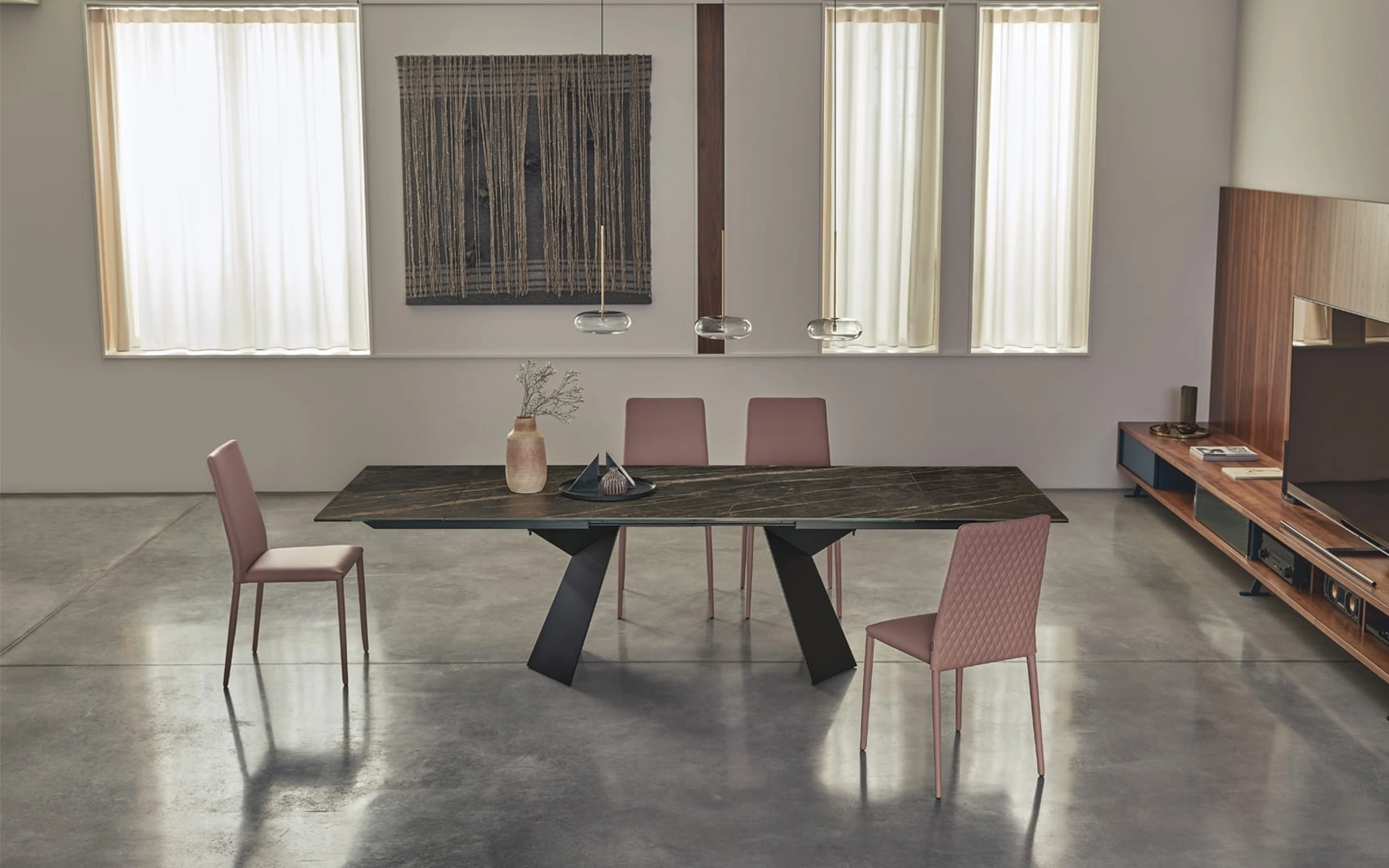 Se desideri un tavolo da pranzo di grande design, contattaci e ricevi info e preventivi sul modello presente in foto. Un modello come quello nell'immagine, in abbinamento alle giuste sedute, saprà arricchire lo stile delle stanze di casa dedicate in assoluto all'ospitalità. Ideali per dare vita a degli abbinamenti unici con sedute e complementi moderni, i Tavoli allungabili dell'azienda sono soluzioni tra le più esclusive in commercio, ideali per il living e la zona cucina. Tavolo allungabile Fiandre di Bontempi: realizzato in materiali durevoli è contraddistinto dalle forme decise del top e da un basamento elegante e sofisticato.