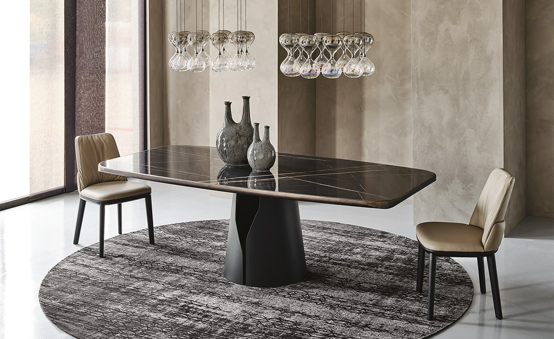 Il Tavolo Giano Keramik Premium di Cattelan Italia si distingue per la sua inconfondibile base centrale, caratterizzata da un'elegante forma arrotondata e un'originale fessura stilizzata che aggiunge profondità visiva. La struttura è sapientemente realizzata in acciaio laccato goffrato, proposta in una varietà di finiture per integrarsi armoniosamente in ogni ambiente. Il piano del tavolo è in ceramica Marmi, un materiale che non solo offre una vasta gamma di estetiche, ma garantisce anche eccezionale resistenza a graffi, calore e luce, assicurando durabilità nel tempo. Questo modello è disponibile in diverse configurazioni, incluse varianti rotonde e due distintive forme a botte, per adattarsi a ogni esigenza di spazio e stile. L'ingegneria e la selezione meticolosa dei materiali sono garanzia di un prodotto di lunga durata e prestazioni superiori, studiato per un'affidabilità costante.