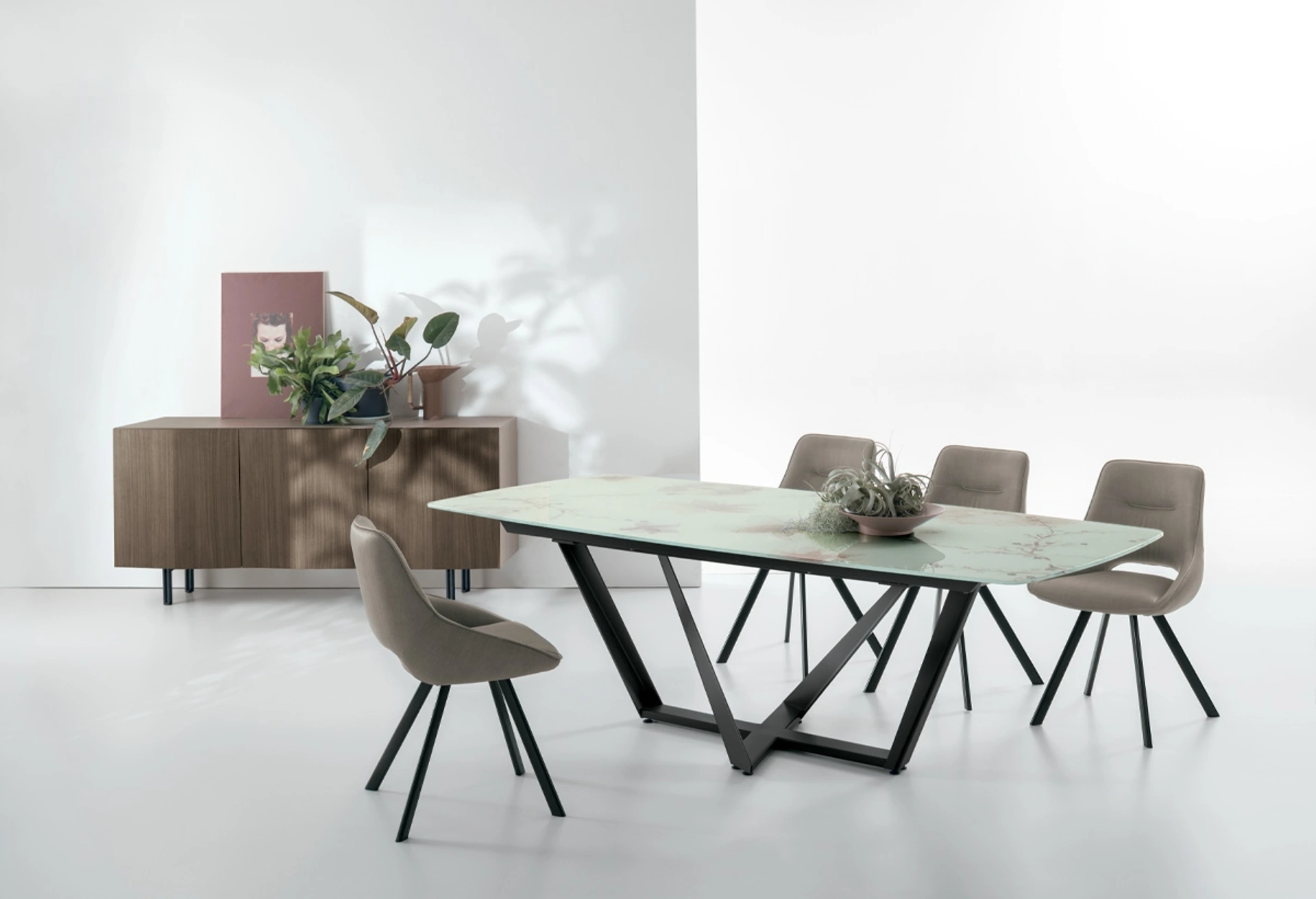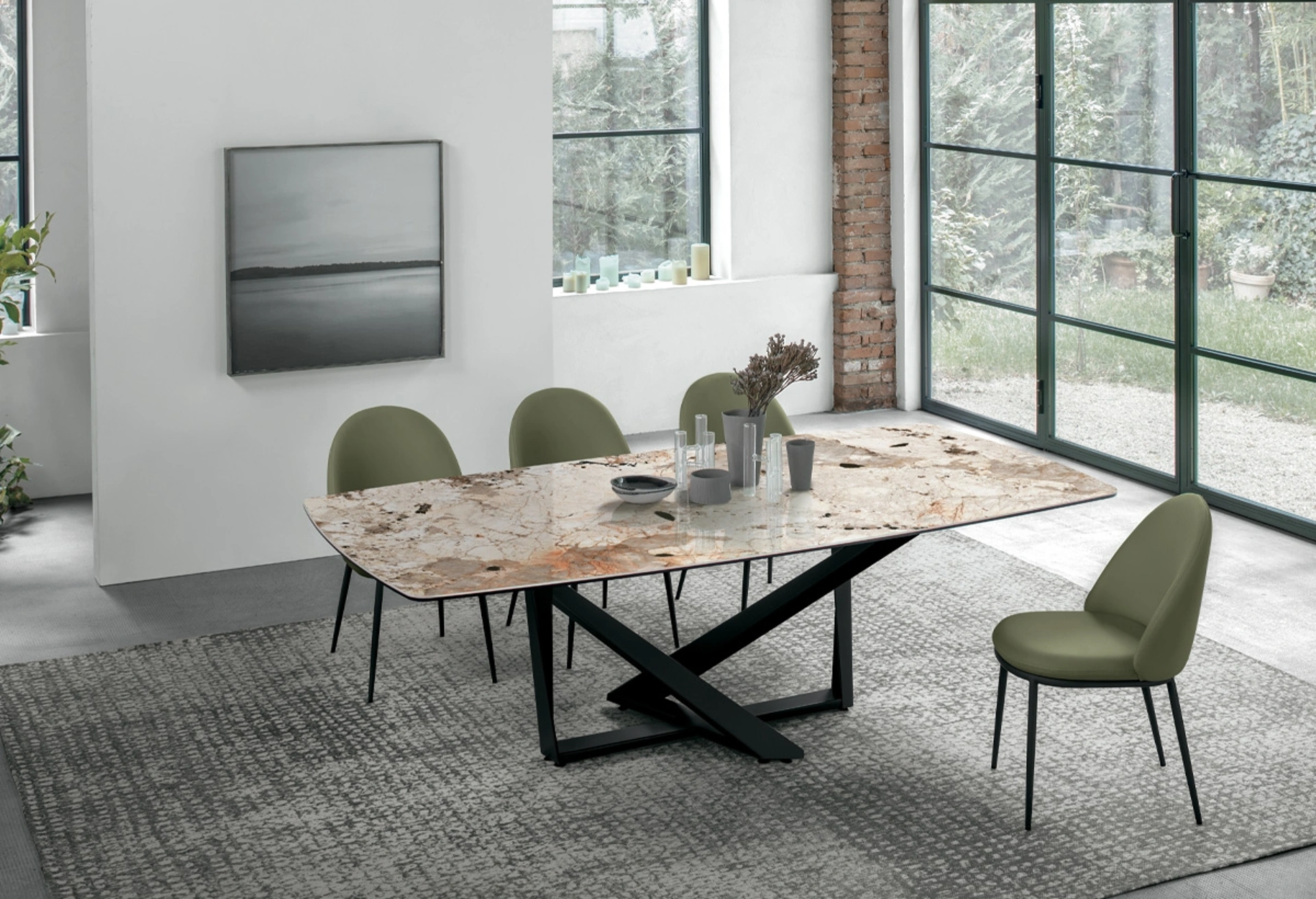 Il tavolo allungabile Priamo, firmato Target Point, si distingue per il suo design scultoreo e la notevole funzionalità, rendendolo un elemento d'arredo versatile per spazi contemporanei ed eleganti. La sua struttura portante presenta un basamento innovativo, realizzato con direttrici metalliche intersecate, disponibili in finiture raffinate quali spazzolato, bianco, grafite o un distintivo marrone vintage, conferendo stabilità e un'estetica ricercata. Il piano, disponibile sia in versione fissa che estensibile, offre un'ampia scelta di materiali d'alta qualità: dal gres porcellanato con varianti come Grafite, l'elegante effetto marmo Emperador, Carrara o Arabescato, fino al calore del legno, la trasparenza del vetro o la peculiarità del vetro ondulato. Progettato per ospitare comodamente da 8 a 12 persone, Priamo è configurabile in diverse geometrie – rettangolare, ovale o a botticella – e in molteplici dimensioni, come 160x90 cm estendibile a 240x90 cm, o 180x90 cm allungabile fino a 270x90 cm. Target Point enfatizza la personalizzazione, permettendo di selezionare materiali e finiture per un'integrazione armonica in ogni ambiente. Questo tavolo rappresenta una sintesi perfetta tra l'ingegneria del design e la selezione di materie prime d'eccellenza, garantendo durabilità e stile.