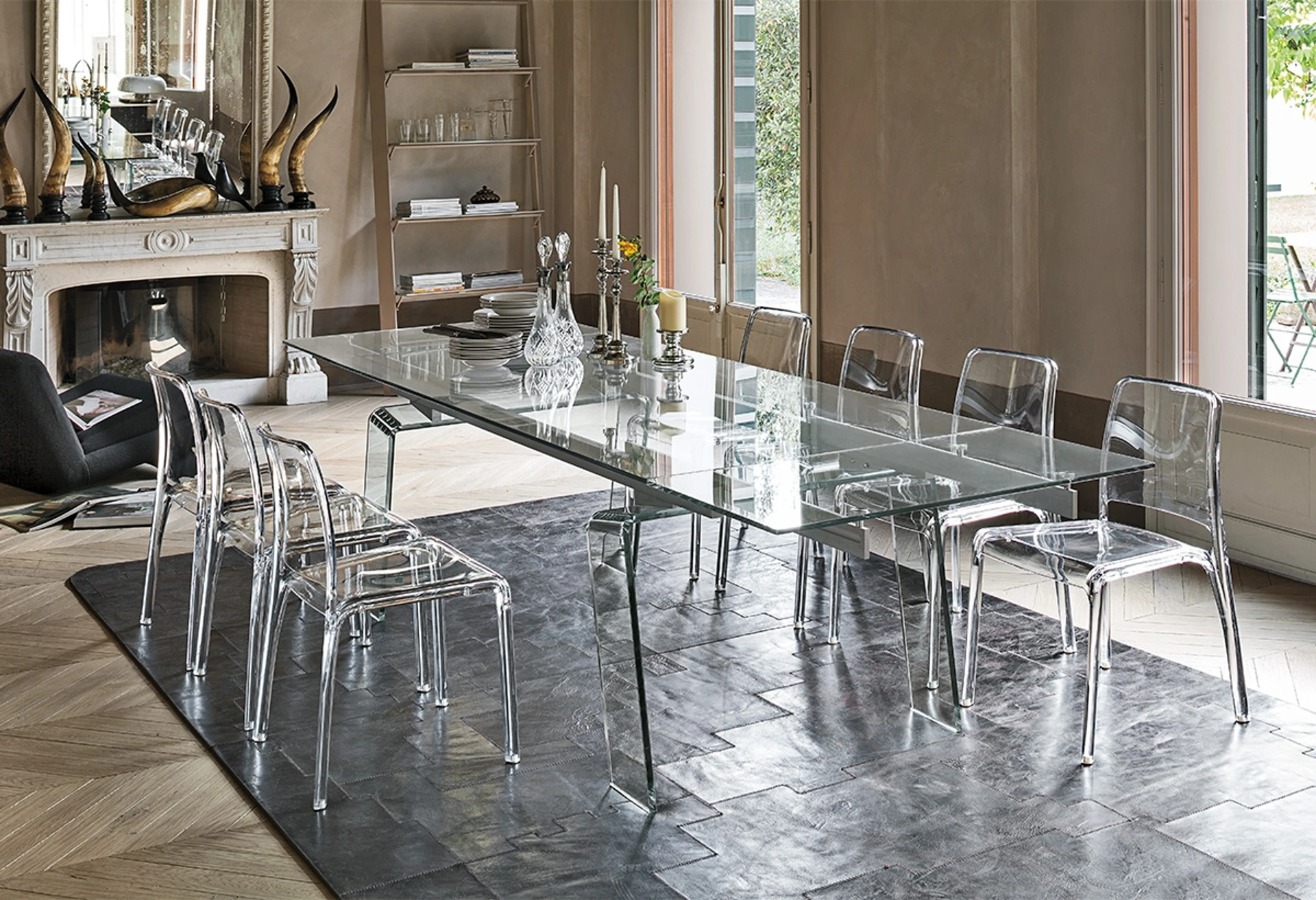 I raffinati giochi di luce creati dalla trasparenza del vetro arricchiscono l'atmosfera con un'eleganza senza tempo.