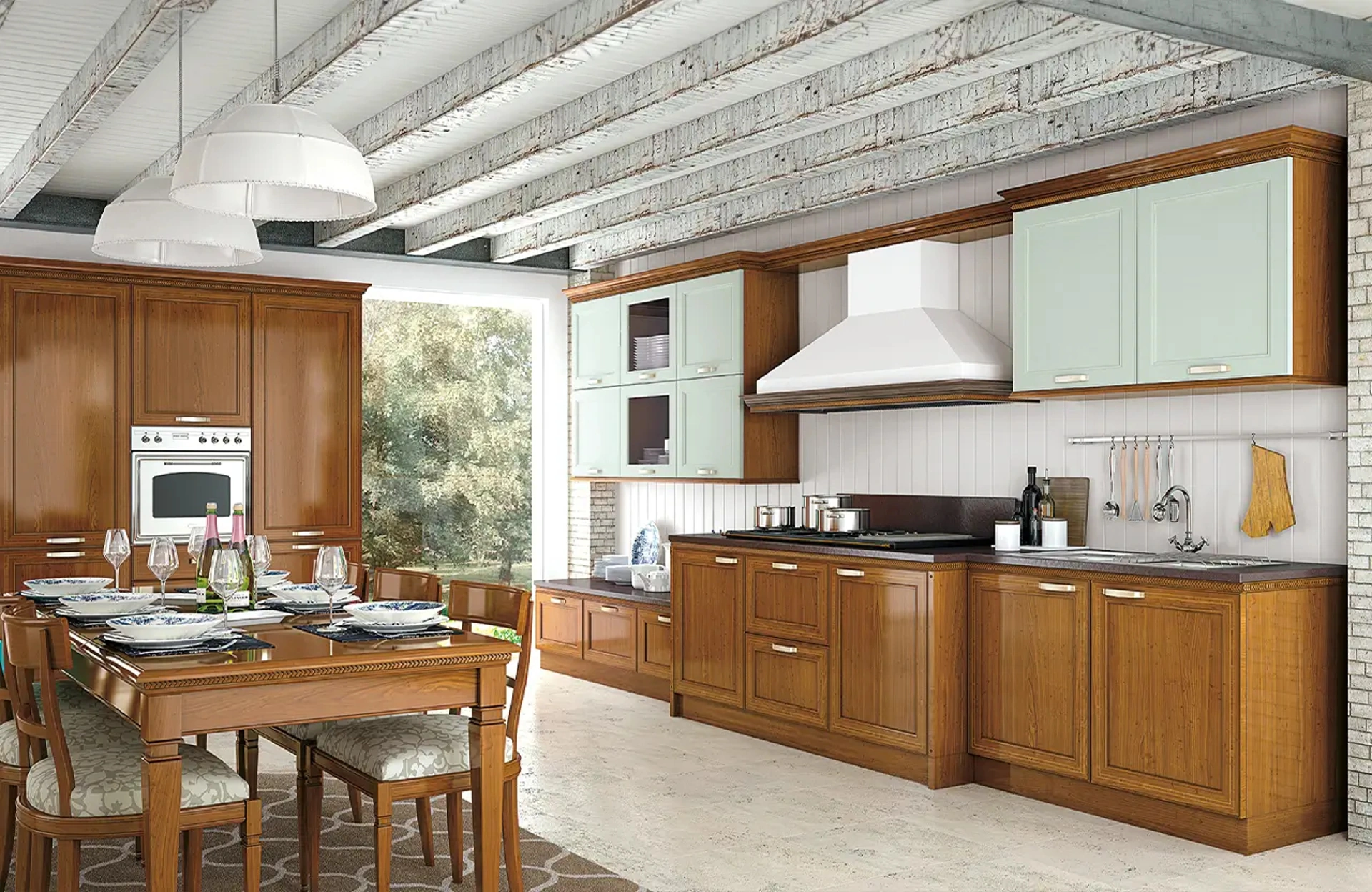 Quali sono le caratteristiche distintive della cucina Le Fablier 'I Ciliegi composizione 05'?Questa composizione incarna lo stile classico e tradizionale, ideale per ambienti country o rustici. È realizzata con materiali come il legno massello o finiture laccate, con ante a telaio e dettagli decorativi che ne esaltano l'eleganza.