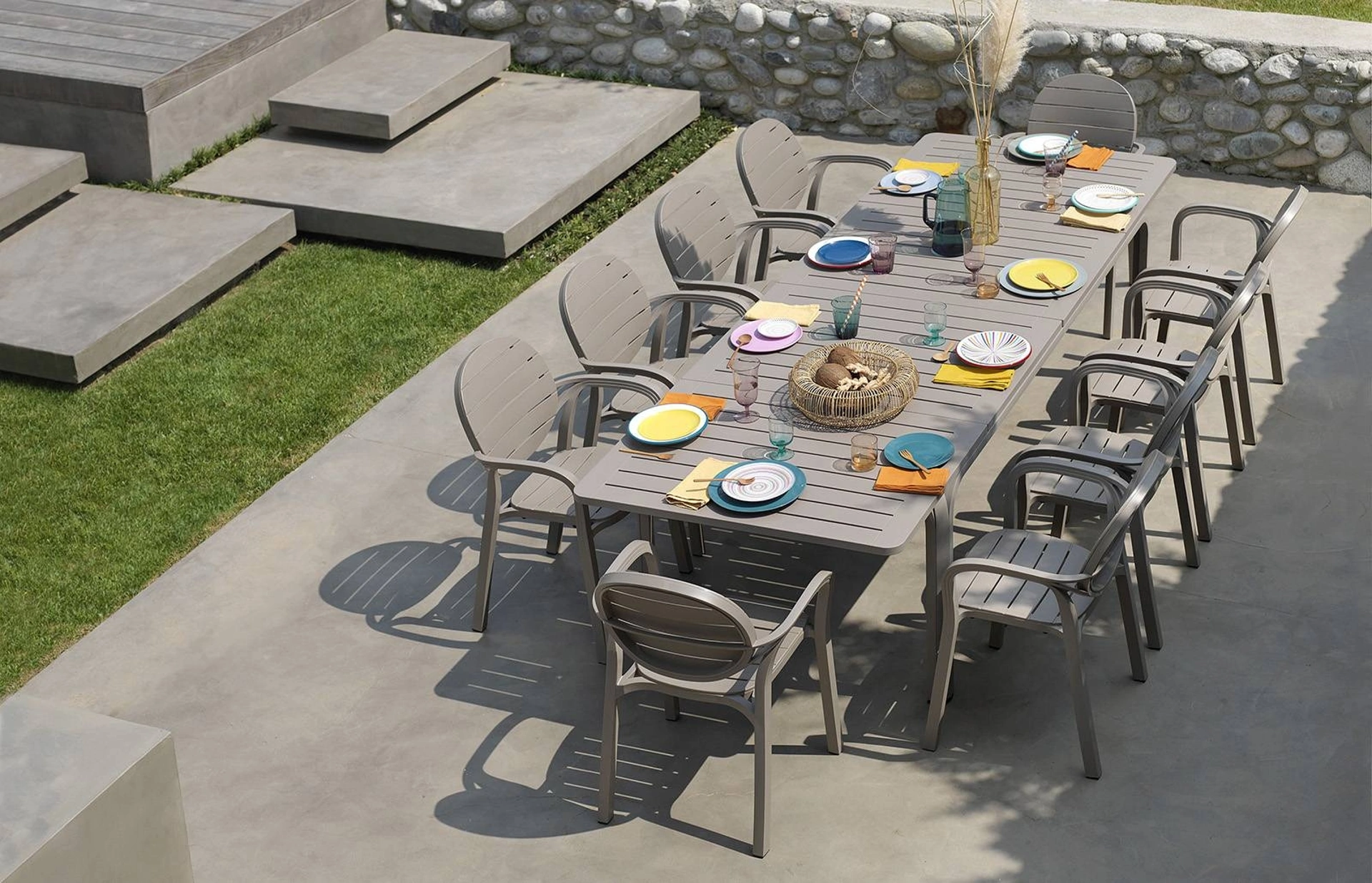Tavolo per esterni Alloro Extensible di Nardi: appartiene alla ricca offerta di mobili per l'outdoor del brand, garanzia di qualità ed eccellenza nel settore. Il conosciuto brand realizza tavoli da giardino in plastica capaci di garantire la totale contentezza della clientela, sia per contenuto estetico che per funzionalità. Chi ha uno spazio all'aperto sa che è una fortuna poterne godere nella bella stagione, facendo due chiacchiere con amici e parenti o gustandosi il paesaggio che ci circonda. In estate i giardini sono quasi altri locali di casa, da organizzare con stile: glimobili occorre che siano belli e resistenti alle condizioni climatiche.