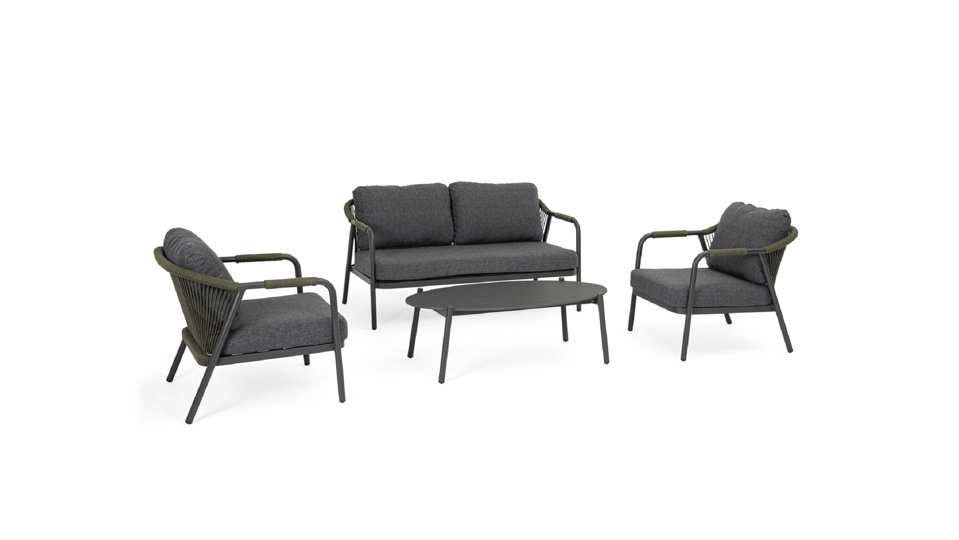 Scopri il salotto da esterno Miravet di Bizzotto, la soluzione ideale per chi cerca comfort e durabilità, disponibile con i nostri servizi di consegna e montaggio nelle aree di Alife, Caserta e Capua. Questo set da 4 pezzi, perfetto per ogni ambiente esterno, vanta una robusta struttura in alluminio verniciato a polvere, resistente agli agenti atmosferici. L'eleganza è data dall'intreccio in corda Olefin e dal raffinato piano del tavolino in pietra sinterizzata, spesso 11mm. I cuscini, sfoderabili e in tessuto idrorepellente 100% polipropilene, garantiscono praticità e lunga durata. Tutti i componenti sono assemblati con viteria in acciaio inossidabile per la massima stabilità. Approfitta della nostra assistenza completa, dalla progettazione alla consegna a domicilio, per un'esperienza d'acquisto senza pensieri e un arredo che dura nel tempo.